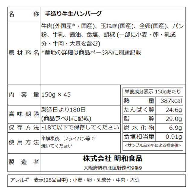 Topハンバーグ 【送料無料】業務用ケース 無添加 牛100% ゆうぜんハンバーグ 150g × 45個入 価格: ¥15,000 (税込) [ポイント還元 750ポイント~] 販売期間: 数量: ケース 在庫: ○ 在庫あり 在庫 ○ 在庫あり 返品についての詳細はこちら レビューはありません ※ ハンバーグソースは別売りです ※ → 無添加 ハンバーグソース商品ページへ ← [お肉の産地] 豪州・国産 ※お届けする商品の箱ラベルの名称は『手造り牛生ハンバーグ』となっておりますが、『ゆうぜんハンバーグ』と同一の製品です