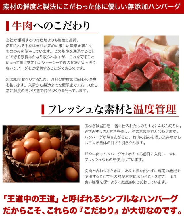 | 原材料名 | 牛肉(豪州・国産)、玉ねぎ(国産)、全卵(国産)、パン粉、牛乳、醤油、食塩、胡椒(原材料の一部に小麦・卵・乳成分・牛肉・大豆を含む) |