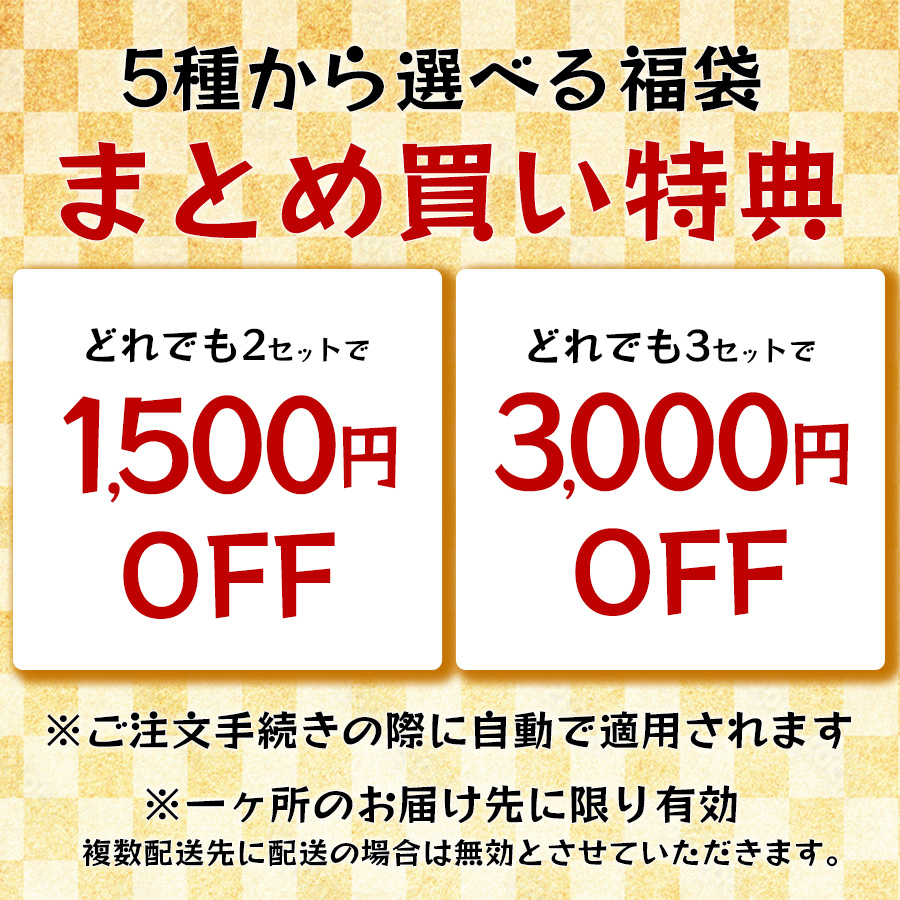 ※種類の違う福袋をご注文の場合、発送予定日が遅い方にあわせてのお届けとなります。